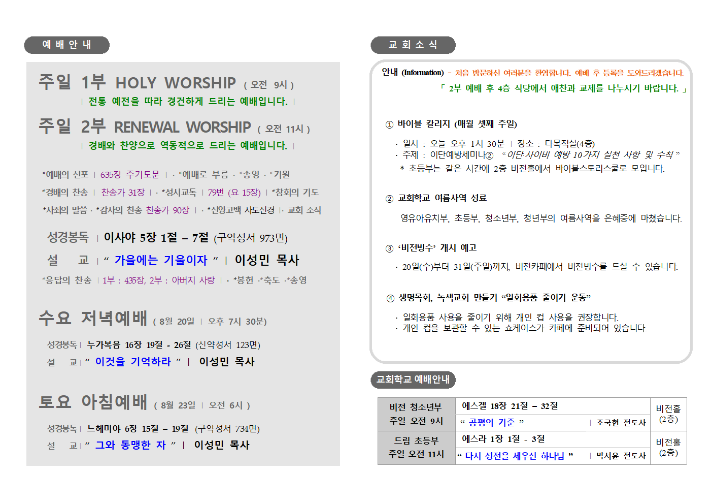 예배 안내